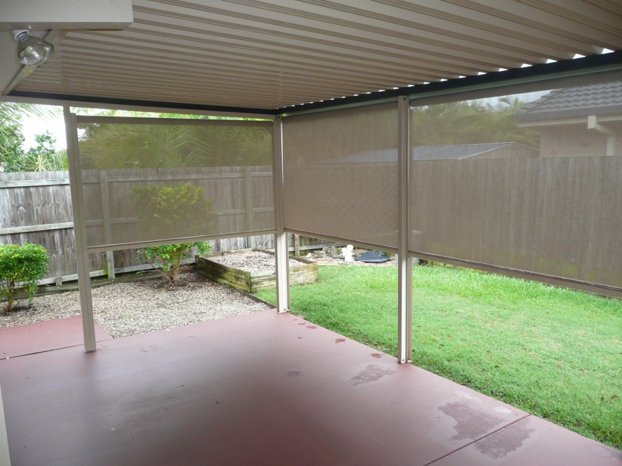 Covered BBQ patio with adjustable pull down blinds