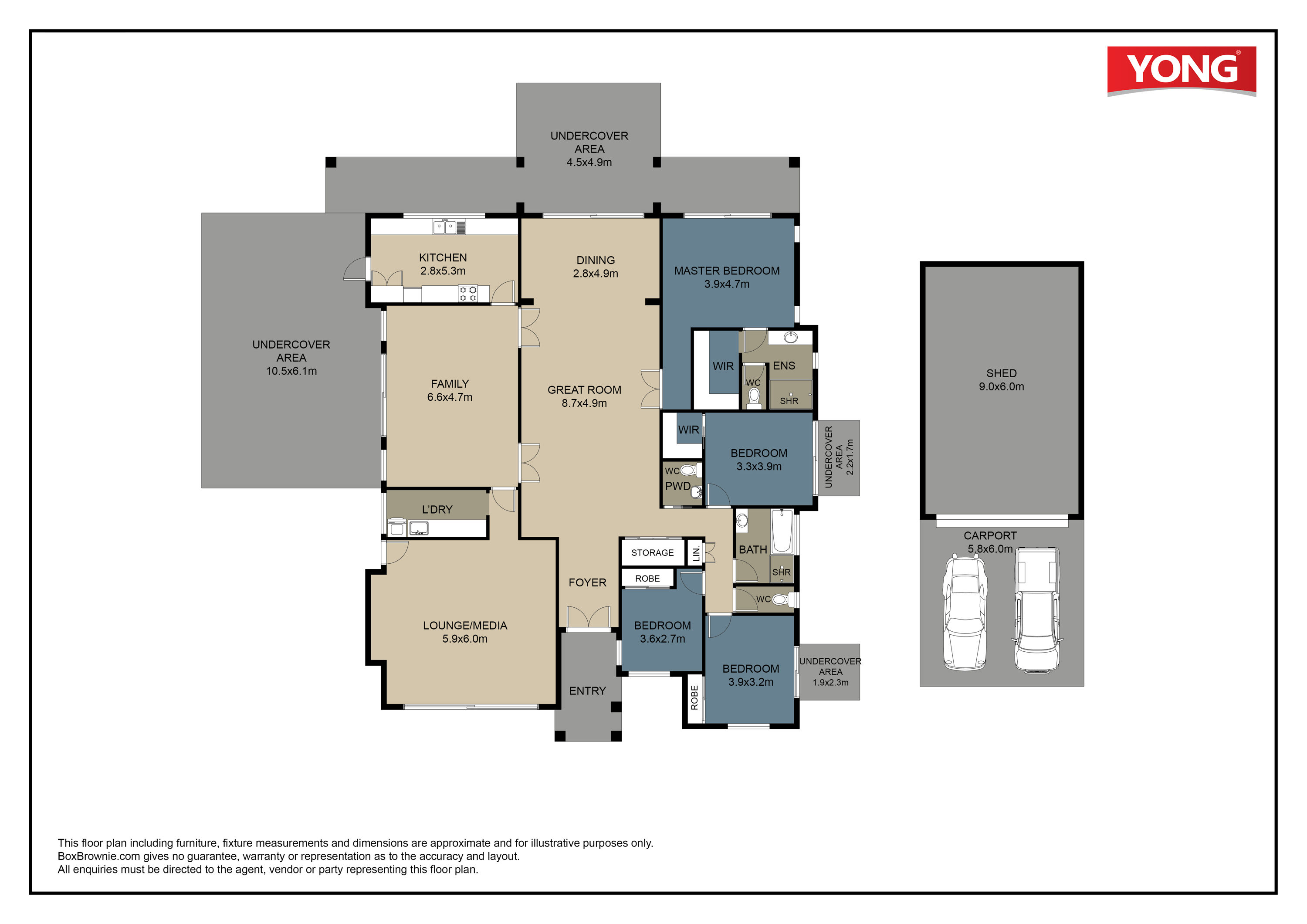 • Large covered outdoor entertaining area